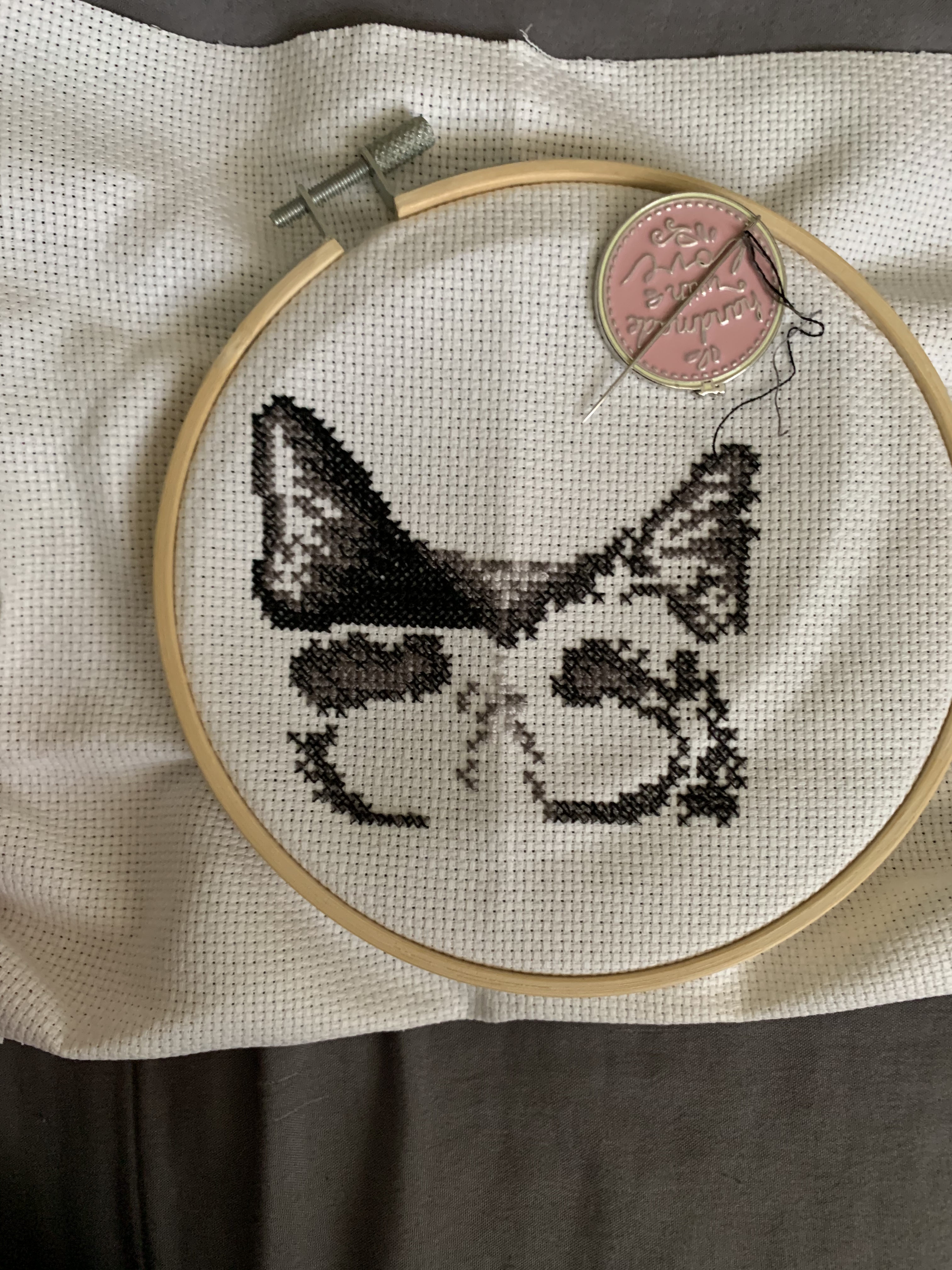 This was my new cross stitch start for February and I worked on it for 3 days. It should have been 4 which is kind of disappointing since I could have finished the house and a few more details with an extra day. However I’m really happy with my progress since I have never stitched on linen before. I spent a lot the first day just playing around and figuring it out. I worked on it yesterday and I finished the border, the S and P, the grass and the bottom half of the house. I’m proud that I have mostly figured it out and now I can work on trying to make my stitches look better. I’m sure when I try to stitch on a higher count (this is 28 ct) that I will have a learning curve again.