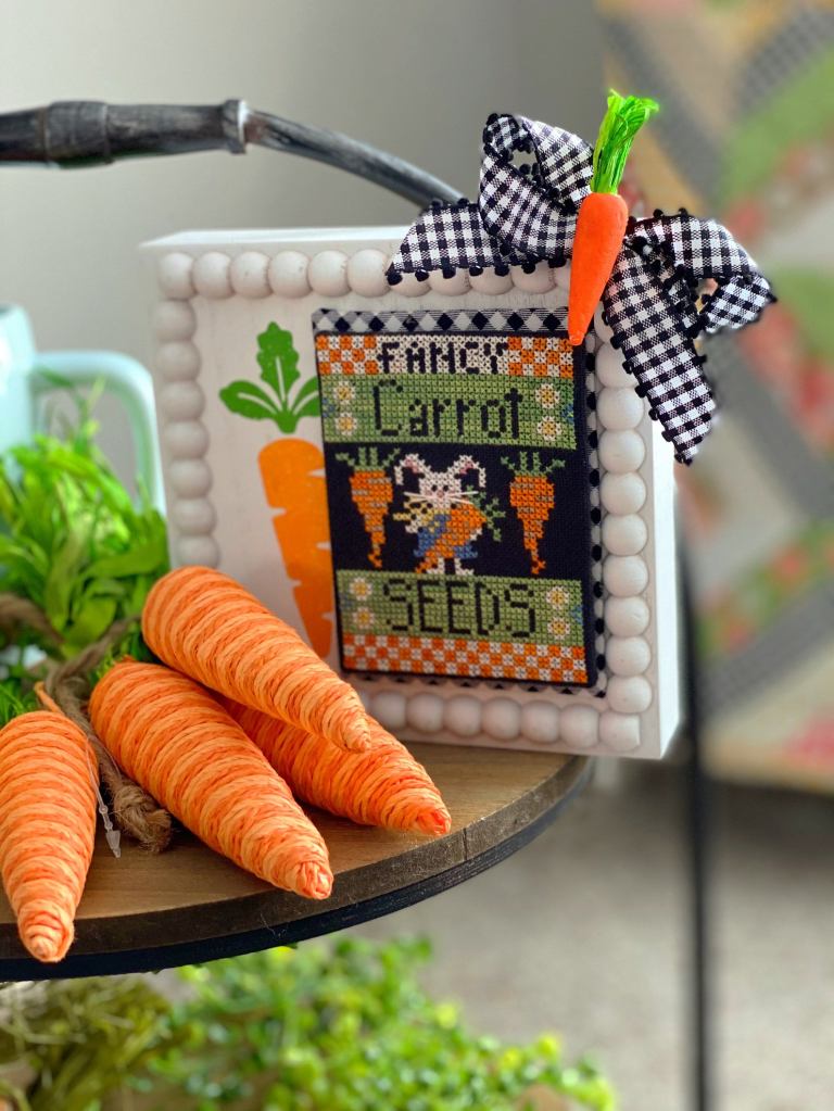 I don’t think I have shared any of these before but these are all the seed packets I have purchased from Stitching With the Housewives. I was originally planning on finishing them all as seed packets but I don’t know how I would display them all together so I think I will just take some inspiration from the way Priscilla shows them finished. These are a part of their tiered tray tidbits series but I think they would look cute in a few different places in my house. I also bought one more Housewife charts since their designs fit my style so well.