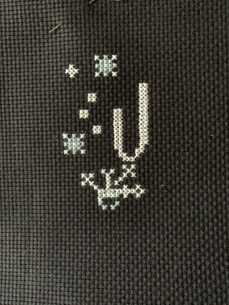 *I need to rip out that little part on the snowflake right under the U because I miscounted.