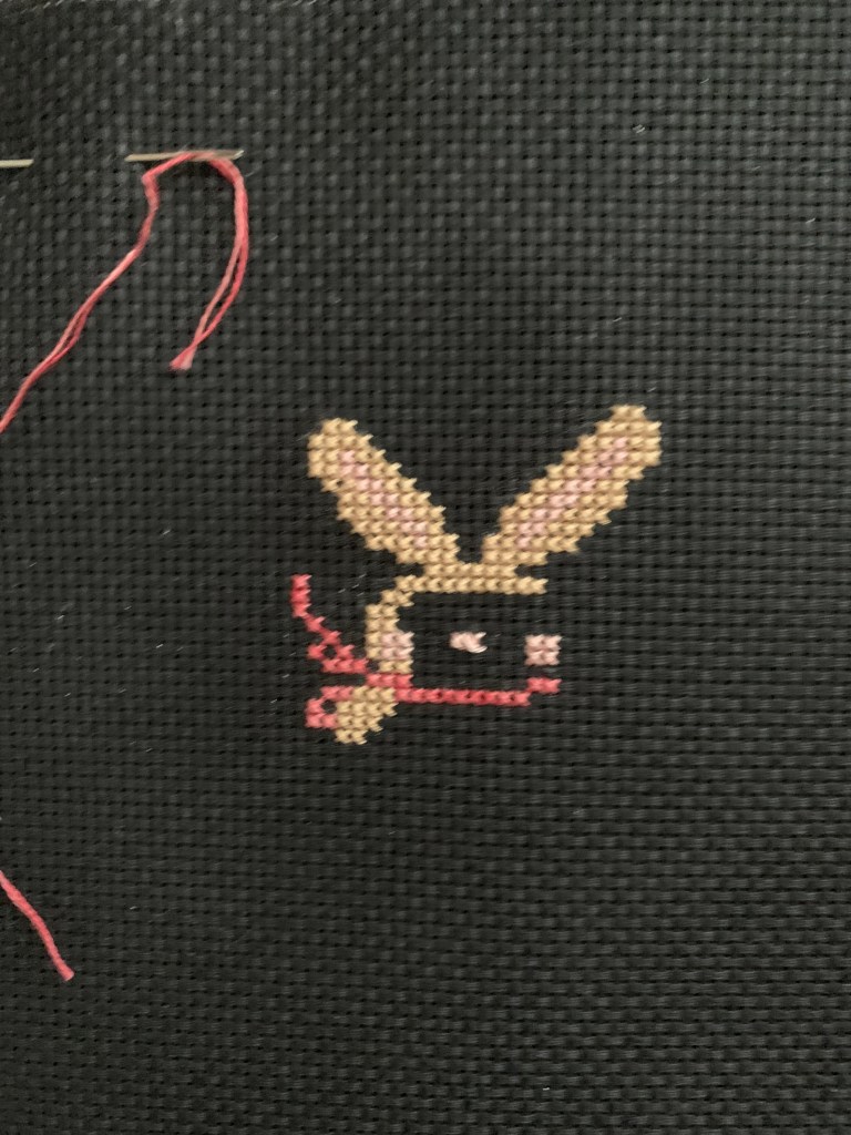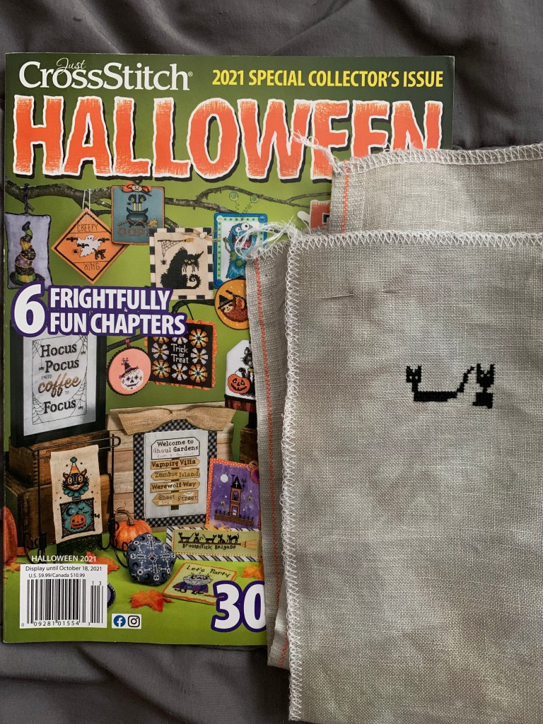 I completely frogged out the bat that I had started on the left because I was using a thicker dmc floss and I wasn’t liking how it was stitching up. I’m happy that I have made it over to the witch and I hope next time I work on this to also make a start on the house.