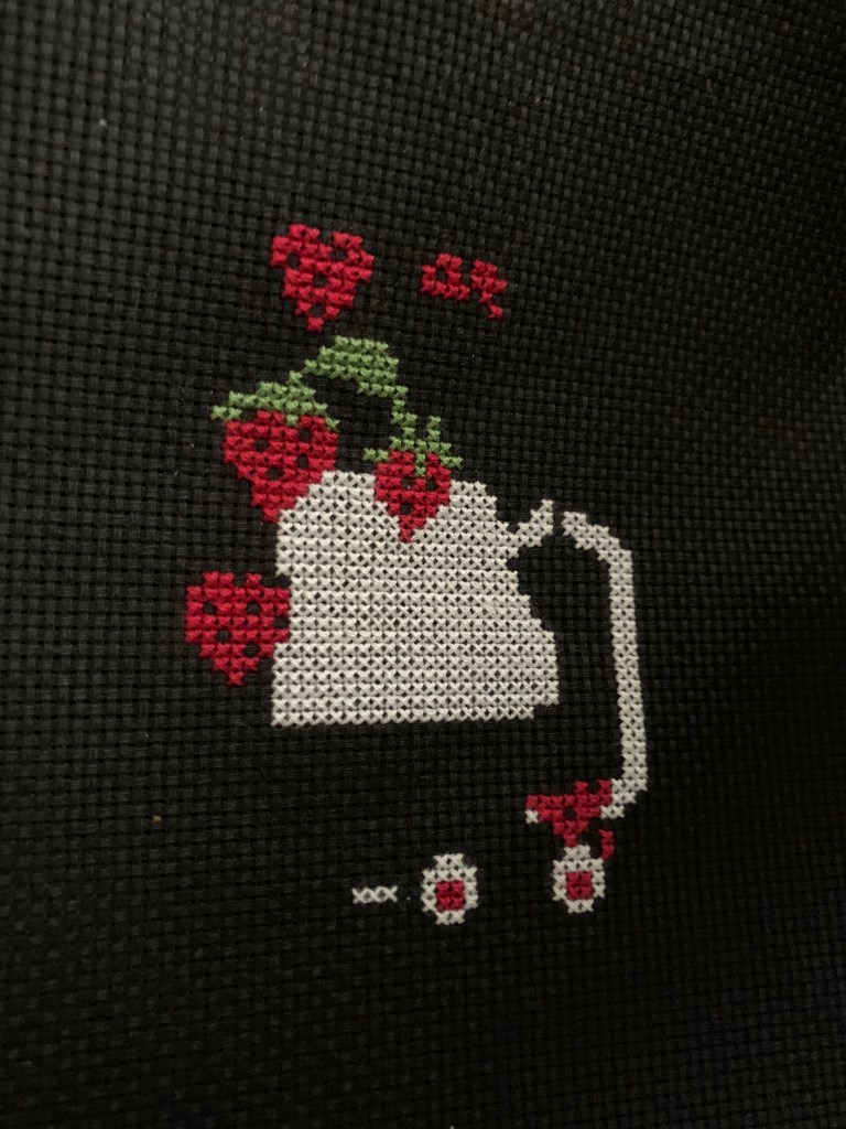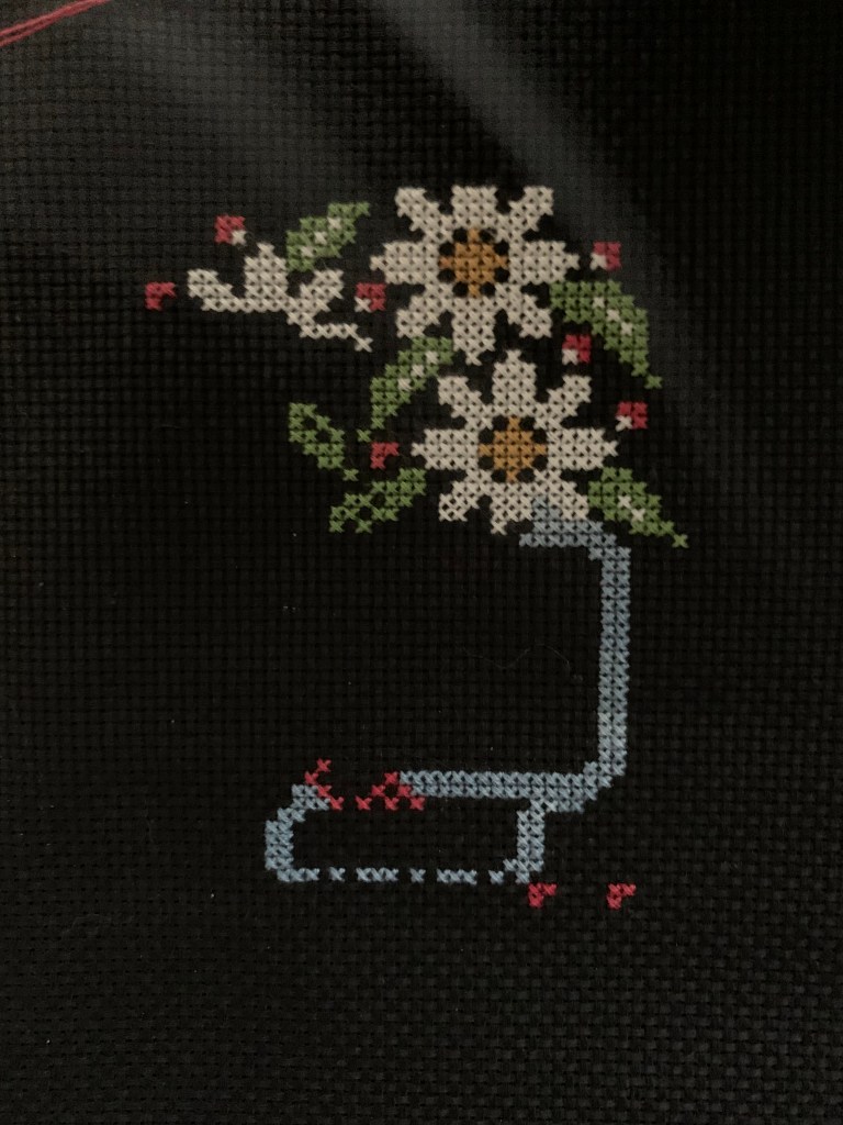 I decided to restart this one since I last shared it. I was originally stitching it on a 10 count fabric and I wasn’t enjoying stitching on it or the way it was looking. I’m now stitching it on a 14ct Aida and I’m liking it a lot more.