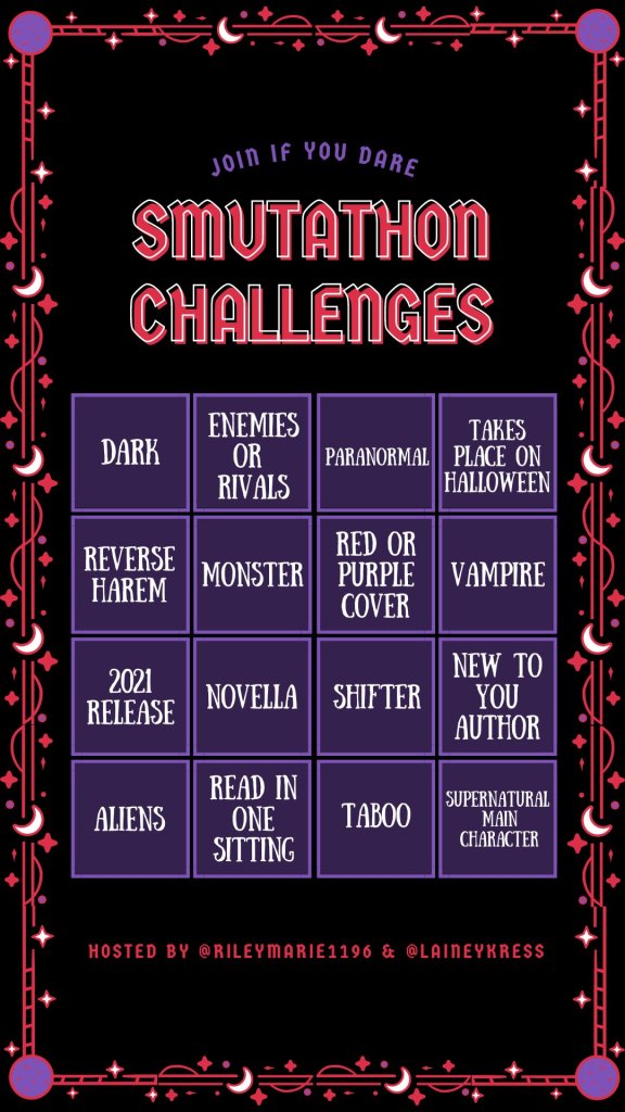 Monday is the start of the Halloween round of Smutathon hosted by Riley and Lainey and I will be participating in some capacity. This is a week long readathon that goes from the 25th to the 31st. I, of course, have a book for every prompt but since I’m so behind on my monthly TBR I might just make it a goal to just read a few of these books. Some of them are quite short and one is a book from my TBR so I think that might be doable. But I might just want to keep reading all the romance since it’s been awhile since I read a bunch at once so I’m just going to share all the books I picked out for this readathon.