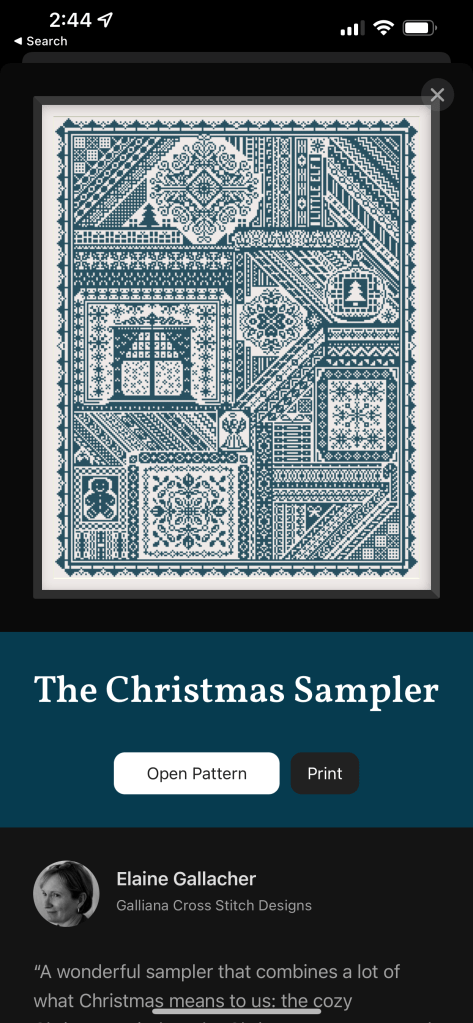 I stitched 325 stitches into this the one day I worked on it for the December Acrostic challenge for the 24 hrs of cross stitch Facebook group. Here’s the cover photo of what this will eventually look like: