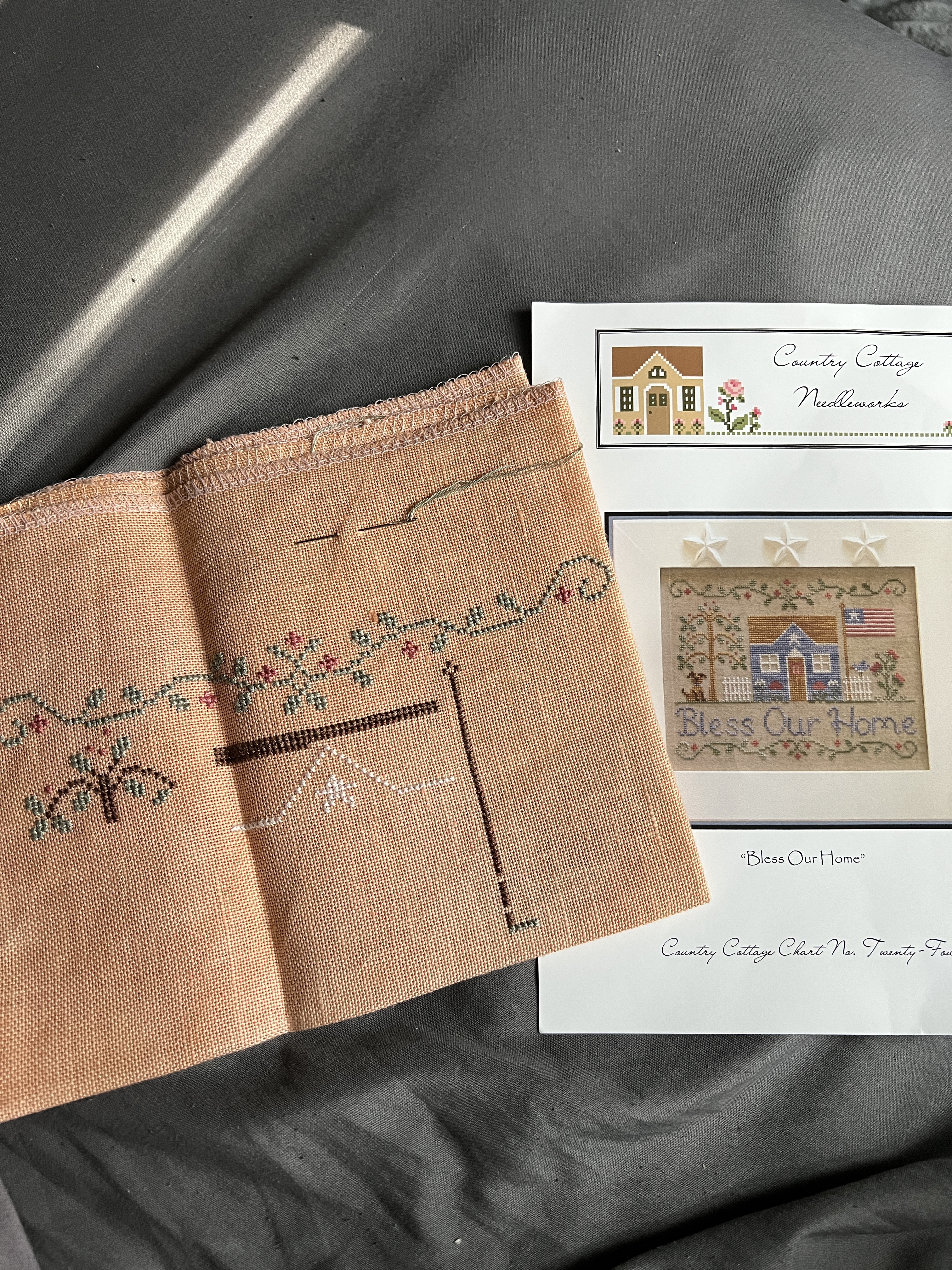 This is the project I’m working on today so I will be working on it more once I post this. This is my second WIPGO piece and I want to finish the first of four pages. It goes down to the top of the house and it doesn’t look like it but it is a lot of stitching. My husband really likes this one and he doesn’t understand why I won’t just work on it until it’s done. But there are so many projects and so little time.
