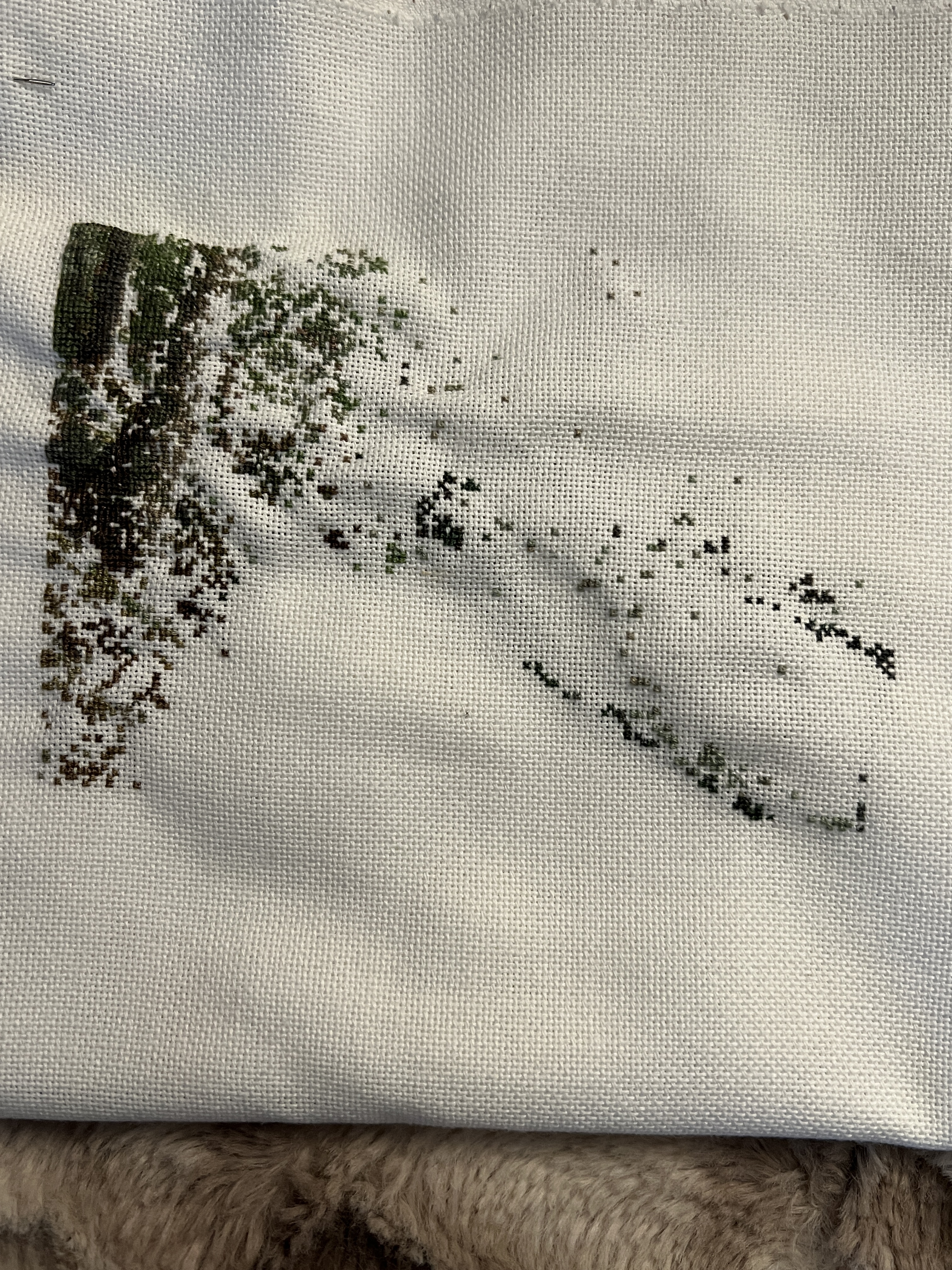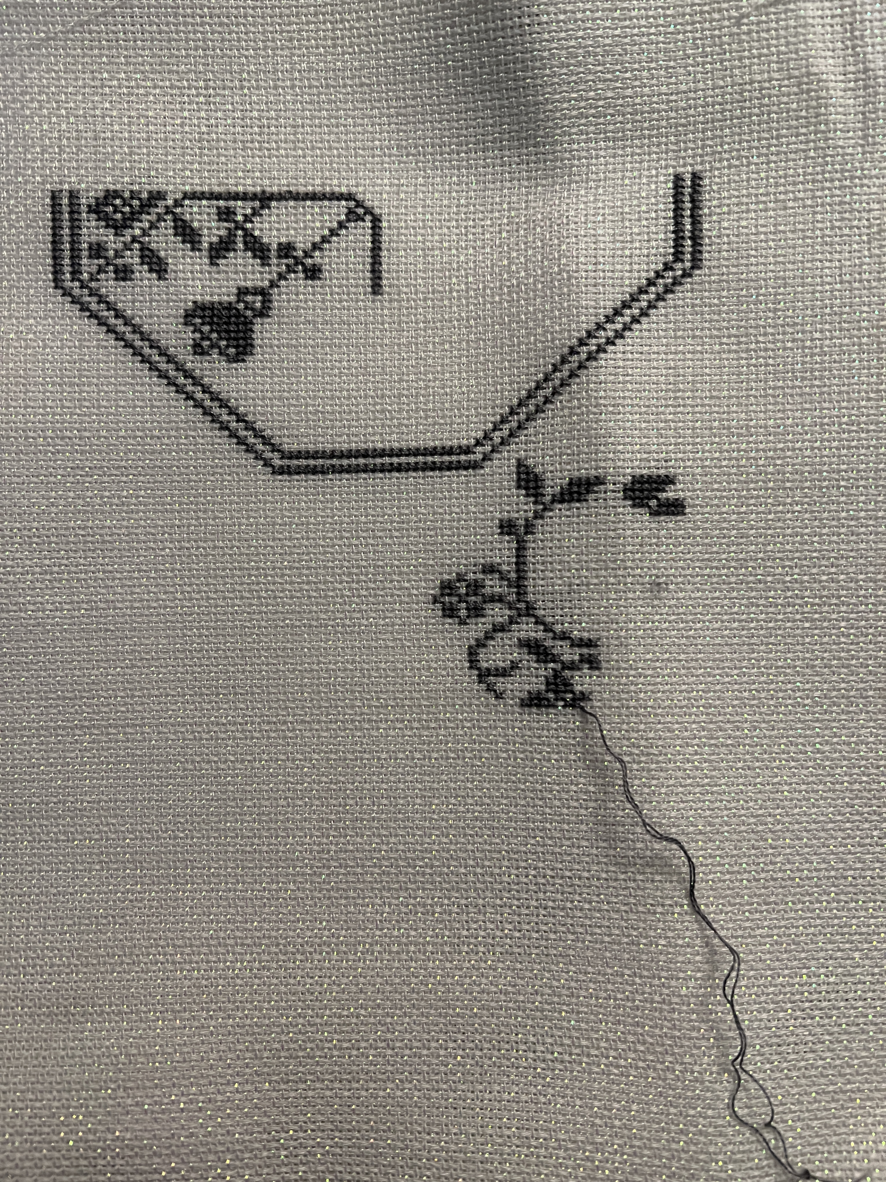 I did around 500 stitches on this and I believe I’m just over 16%. It still doesn’t look like much but I feel like I’m creeping closer to it looking like something.