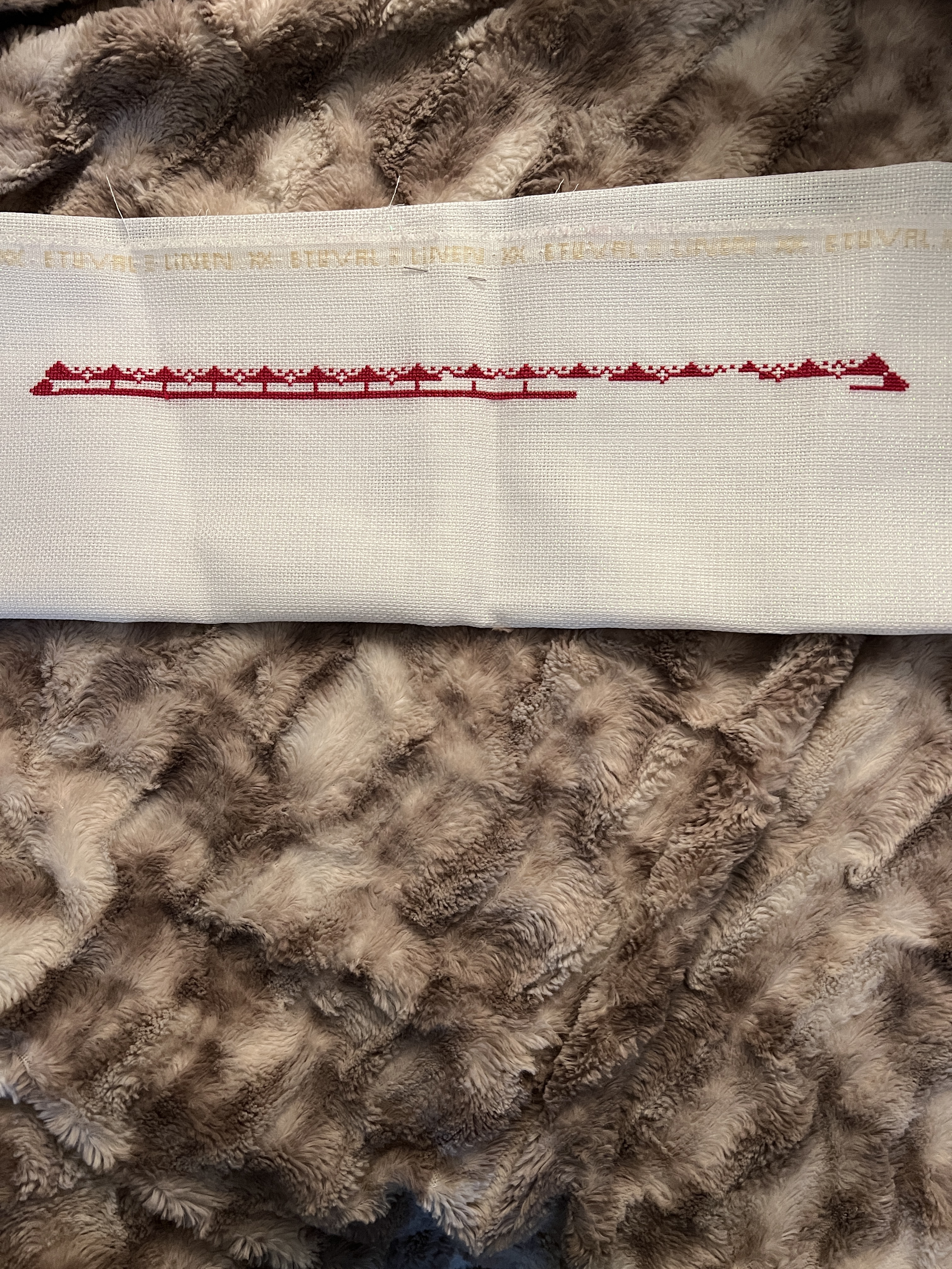 I haven’t worked on this in so long and I barely started it so I’m a little nervous that I might have to restart this. I also have no memory of parking thread so we’ll see how this goes. I recently bought the pdf pattern of this so I can use pattern keeper from now on. Like I mentioned above I need 1,840 stitches of this for my full coverage fanatics “bike around Germany” challenge stop.