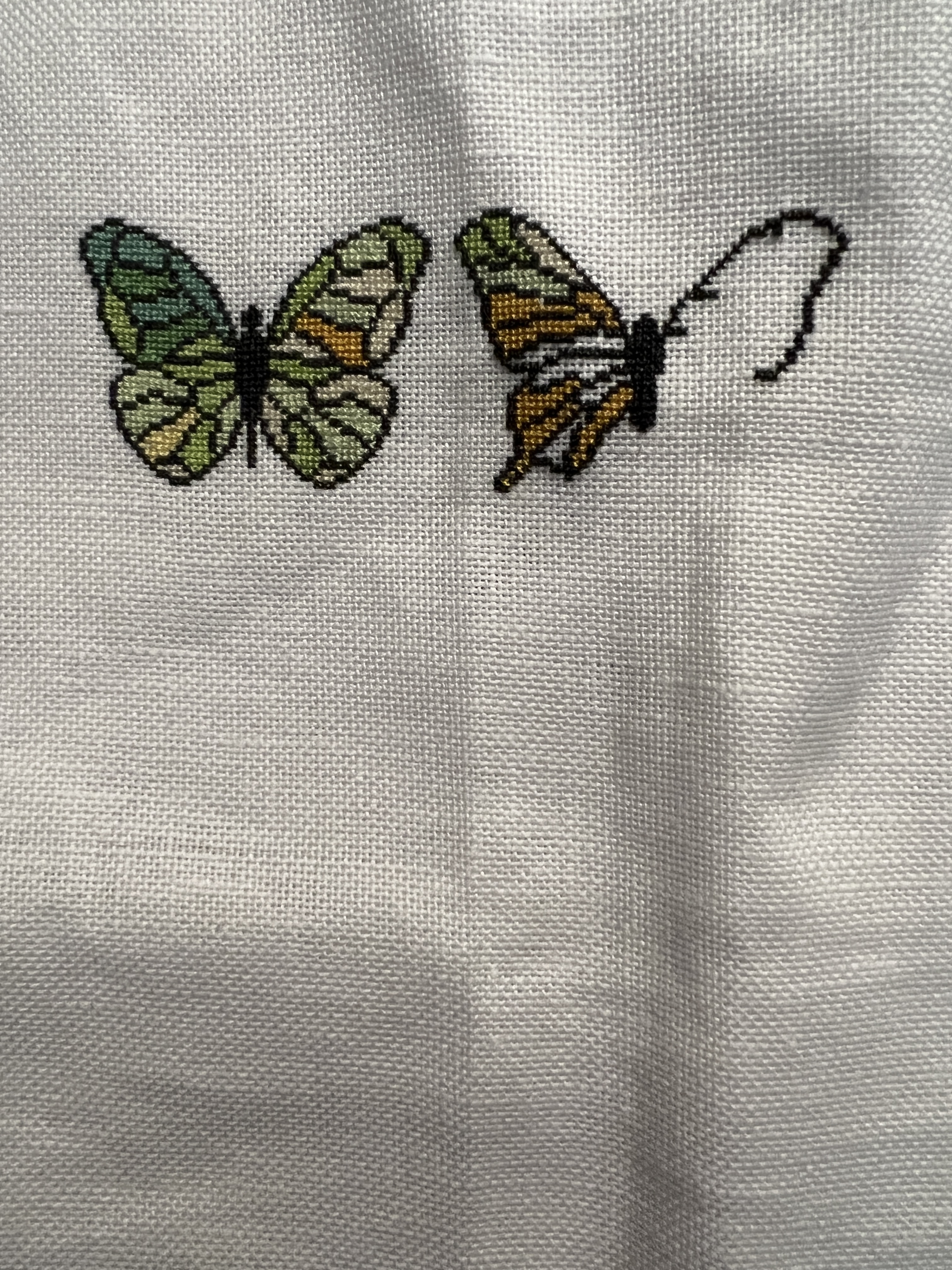 I didn’t do a lot of work on this and I’m woefully behind on this considering I should be working on my outline for the March butterfly and I haven’t even finished the February one. It is fun to see the different colors for the temperature changes and February was a wild one. The first part of the month was in the 80’s and I was wearing shorts and dresses to the last half of the month where it is below freezing in the morning.
