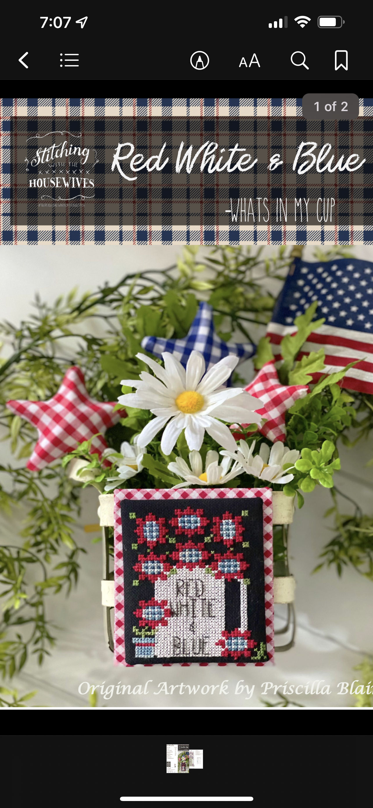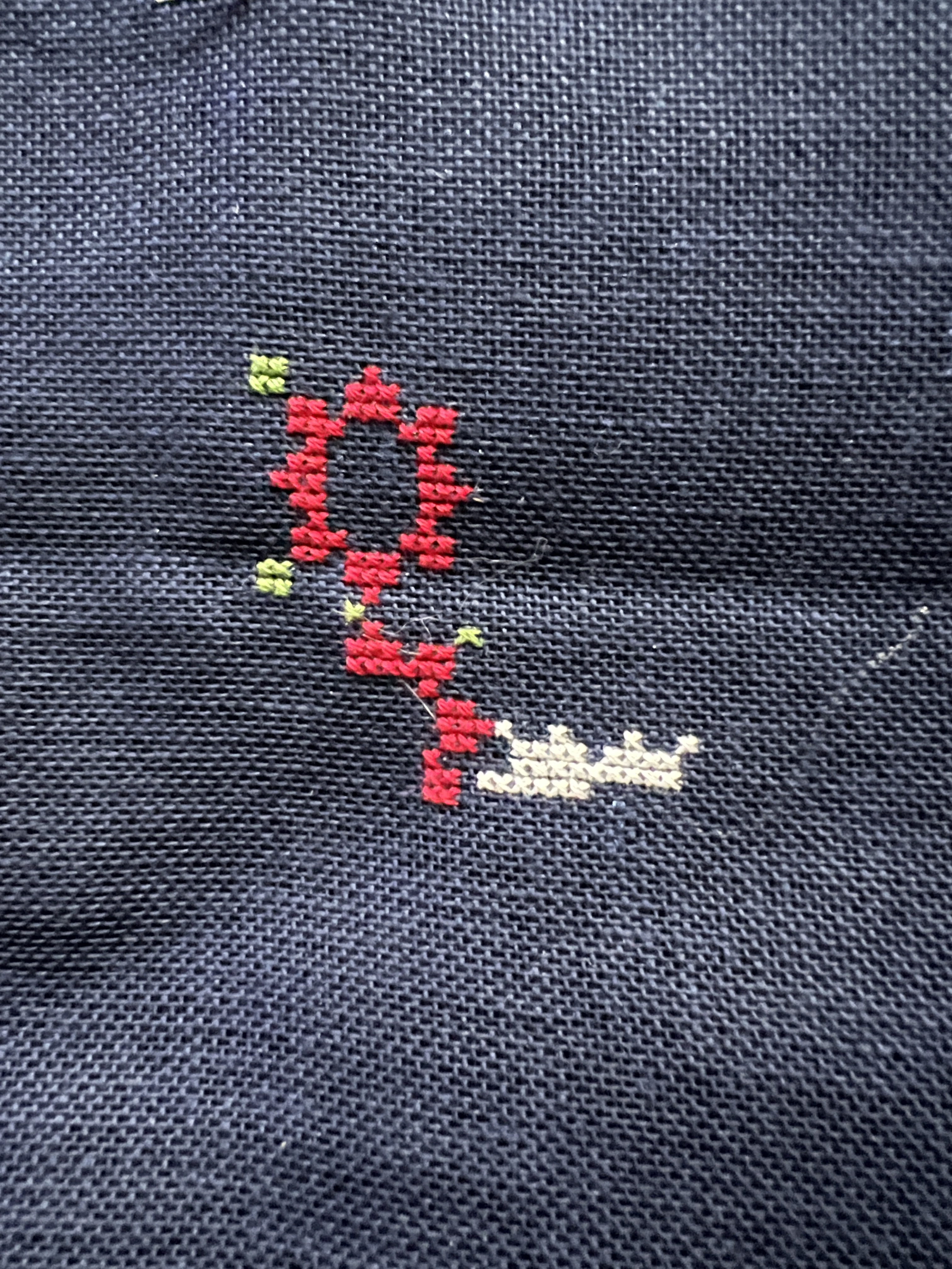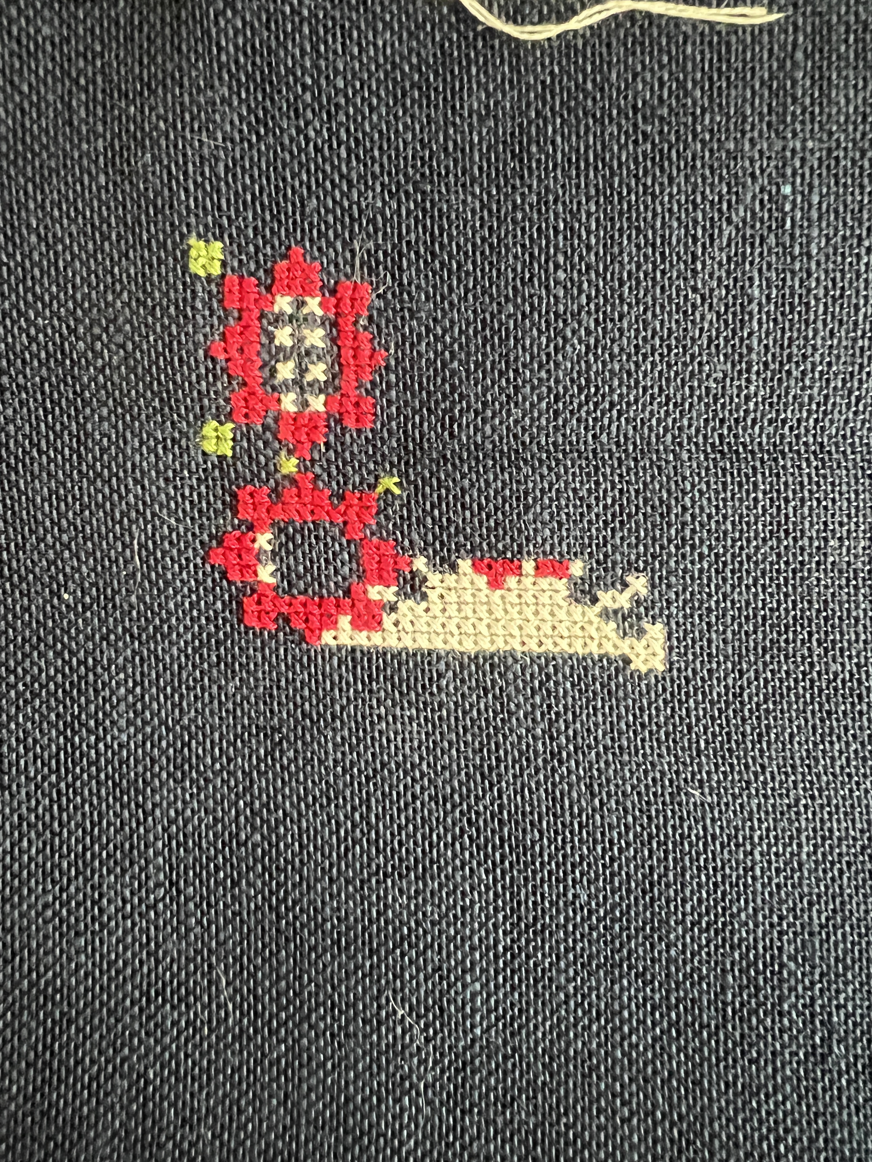 I worked on this one day last month when I was working on my Stitch Maynia projects. I love the idea of this on blue fabric but I have a tough time stitching on it. It’s not too bad with daylight but I can’t work on it at all at night. It’s on a 28 ct Wichelt linen that I’ve used before but I guess all the other times I’ve used it on lighter colors. This is a June WIPGO project and my goal for this one is to finish it… which means I better start actually picking it up during the day.