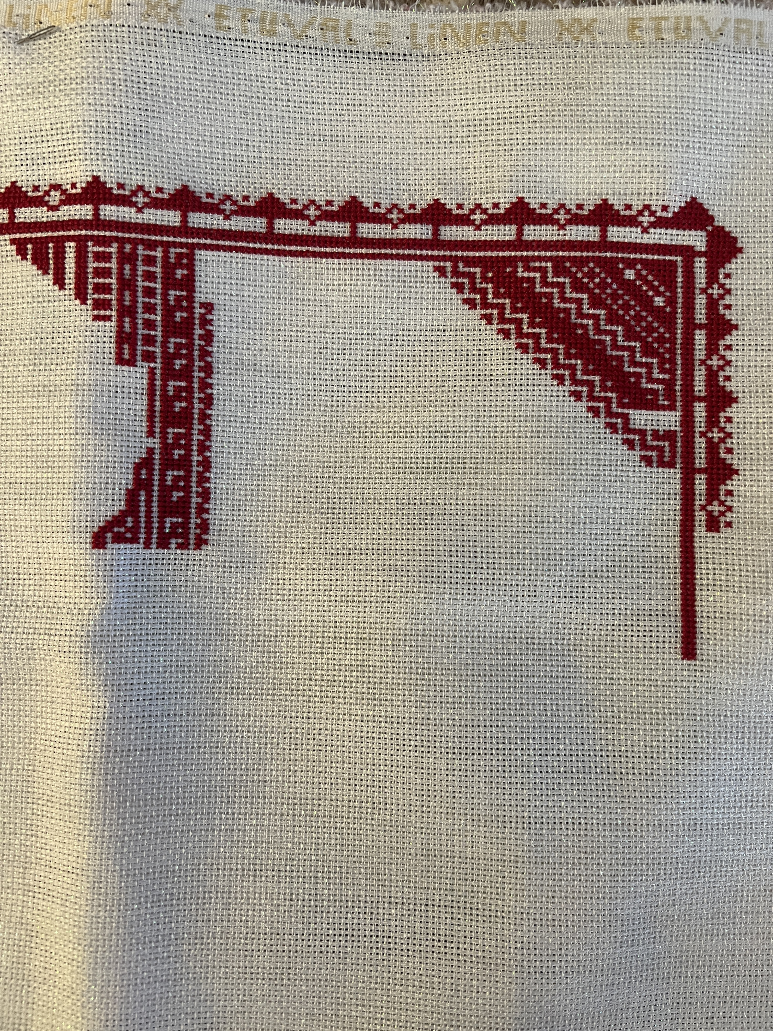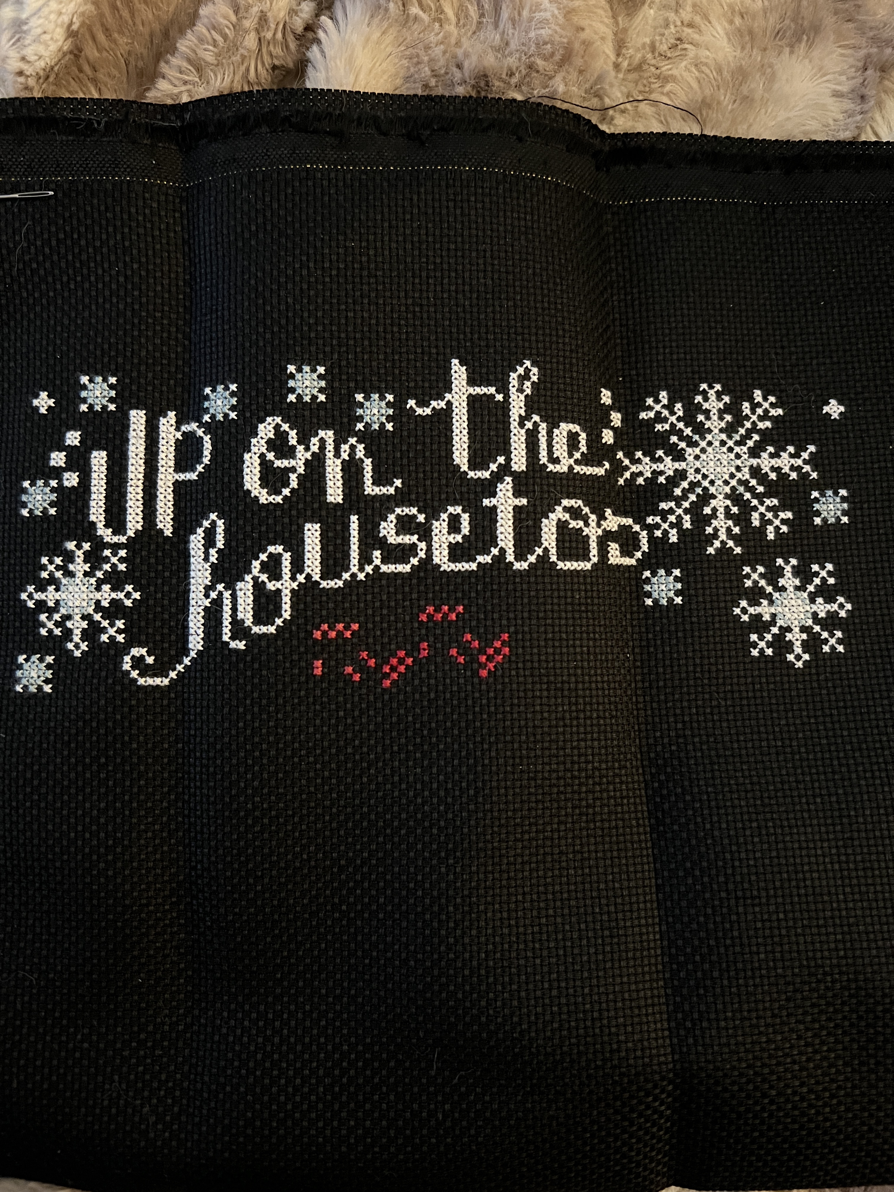 This is another project where I couldn’t find the right before picture. I had most of the chapel done and the trees started before I picked it up. I just need to finish stitching the stand and backstitching the windows. The white stand is kind of hard to see since there’s no colors around it. I think I will continue with the white though because when there’s something darker behind it it does show up better in person.