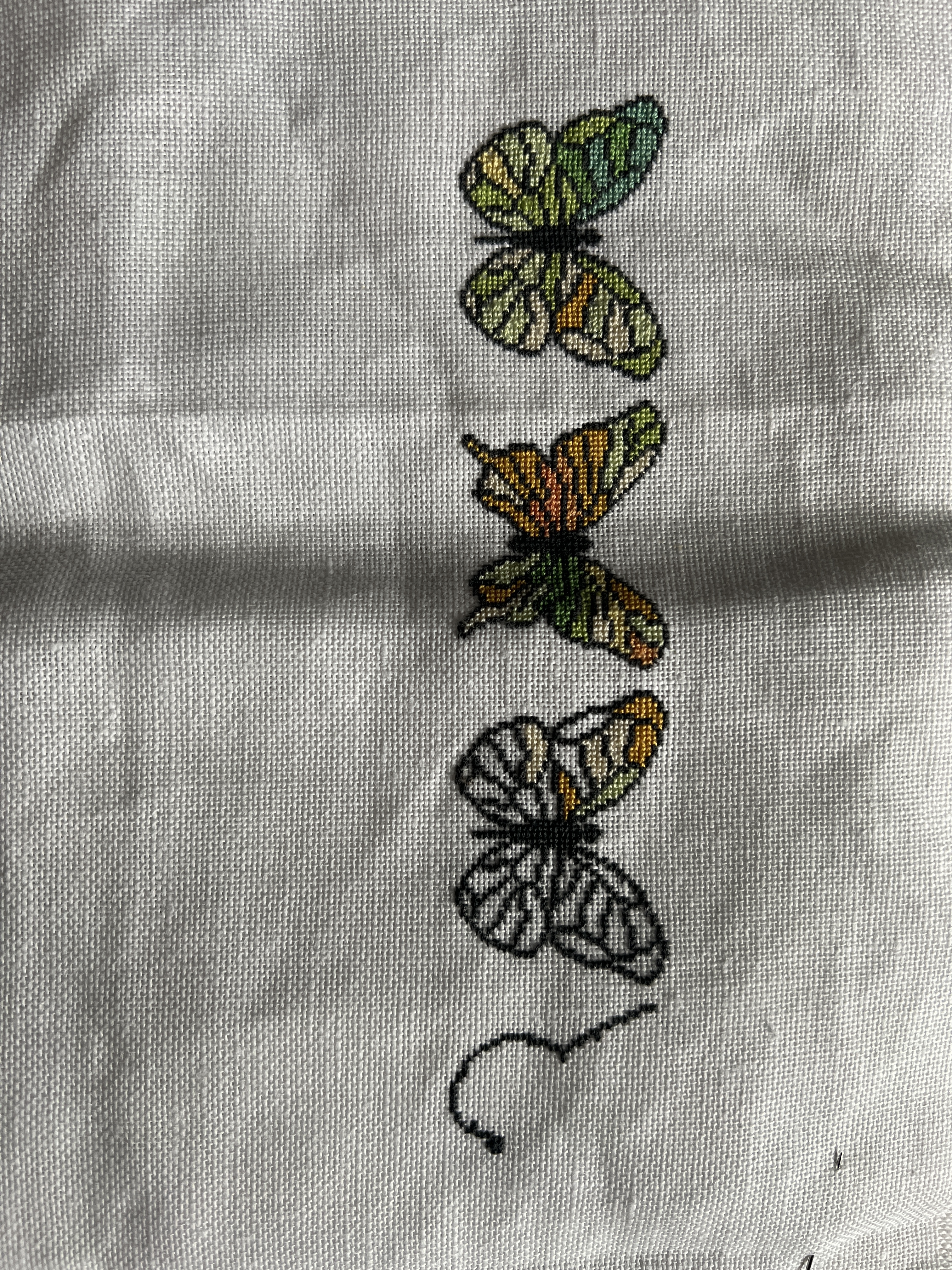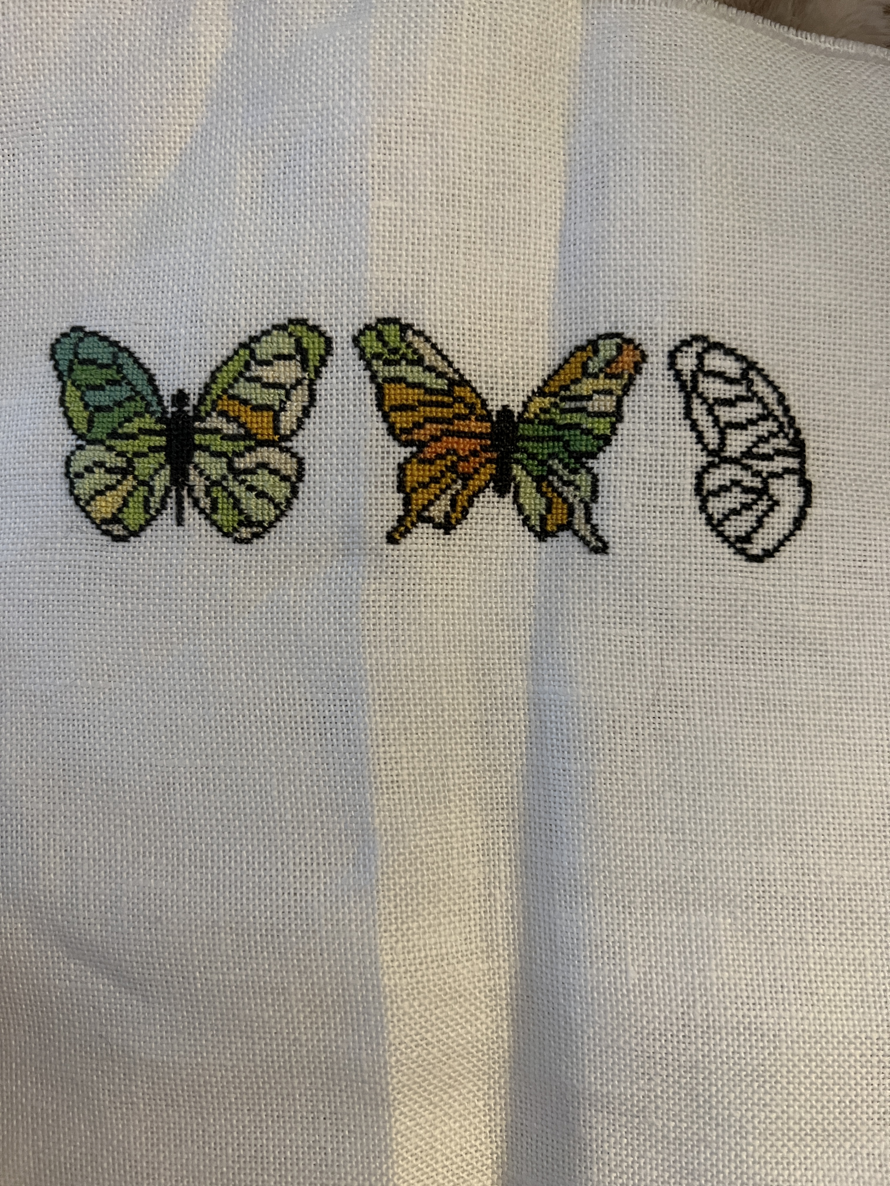 I’m still woefully behind on my Temperature Butterflies by Stitching Mommy on Etsy. I currently on the beginning of March so I have a lot of work to do on this project.