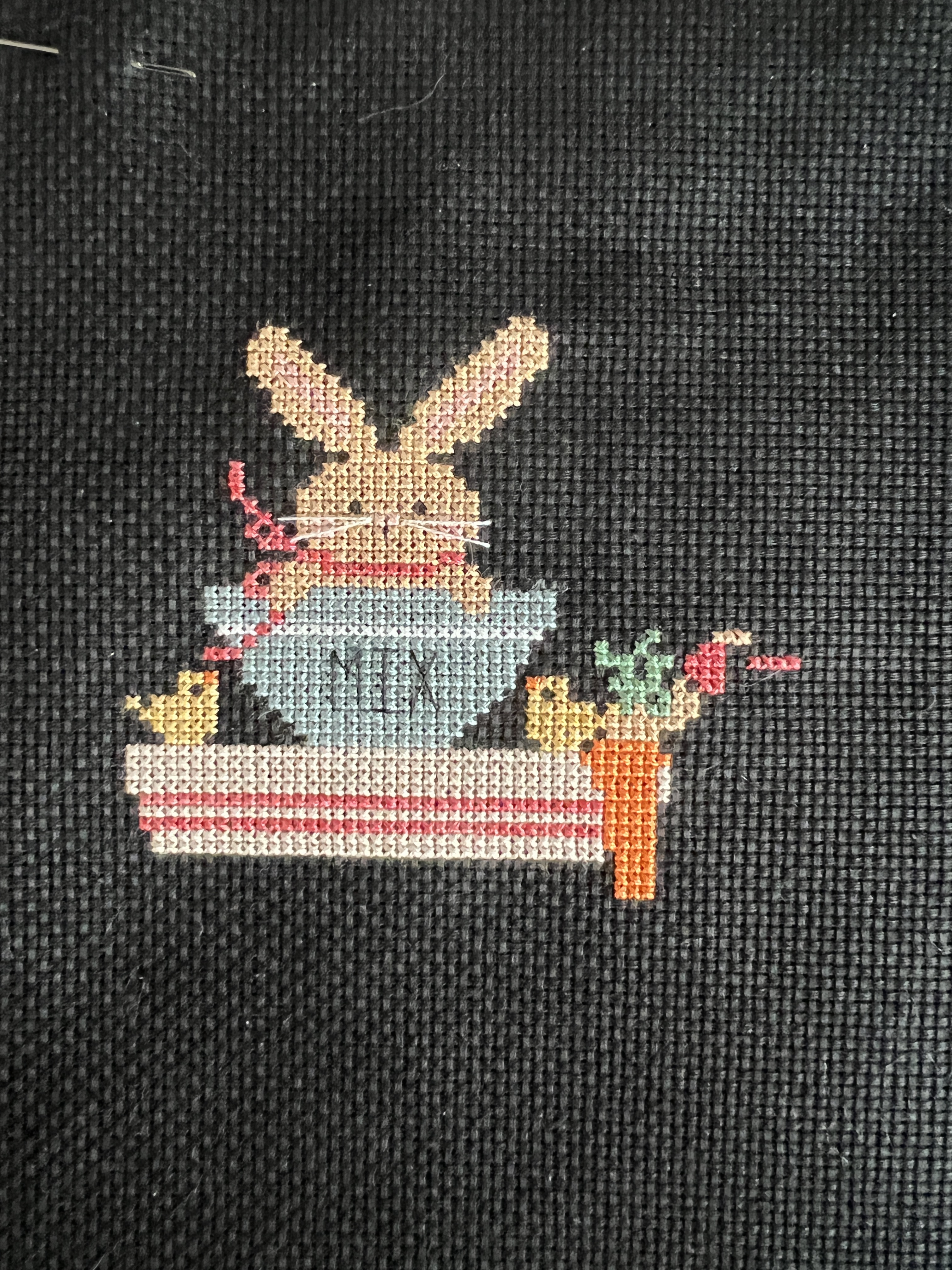 My WIPGO goal for this is to finish the top half of the project. Which is only a little bit more of the mixing bowl and the top half of the girl bunny.