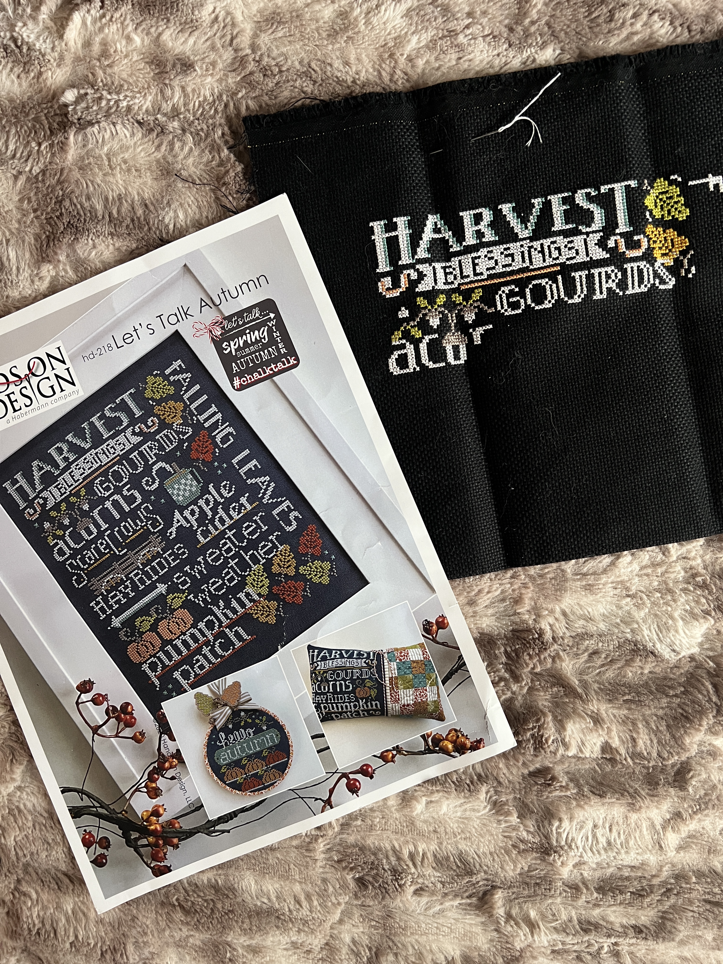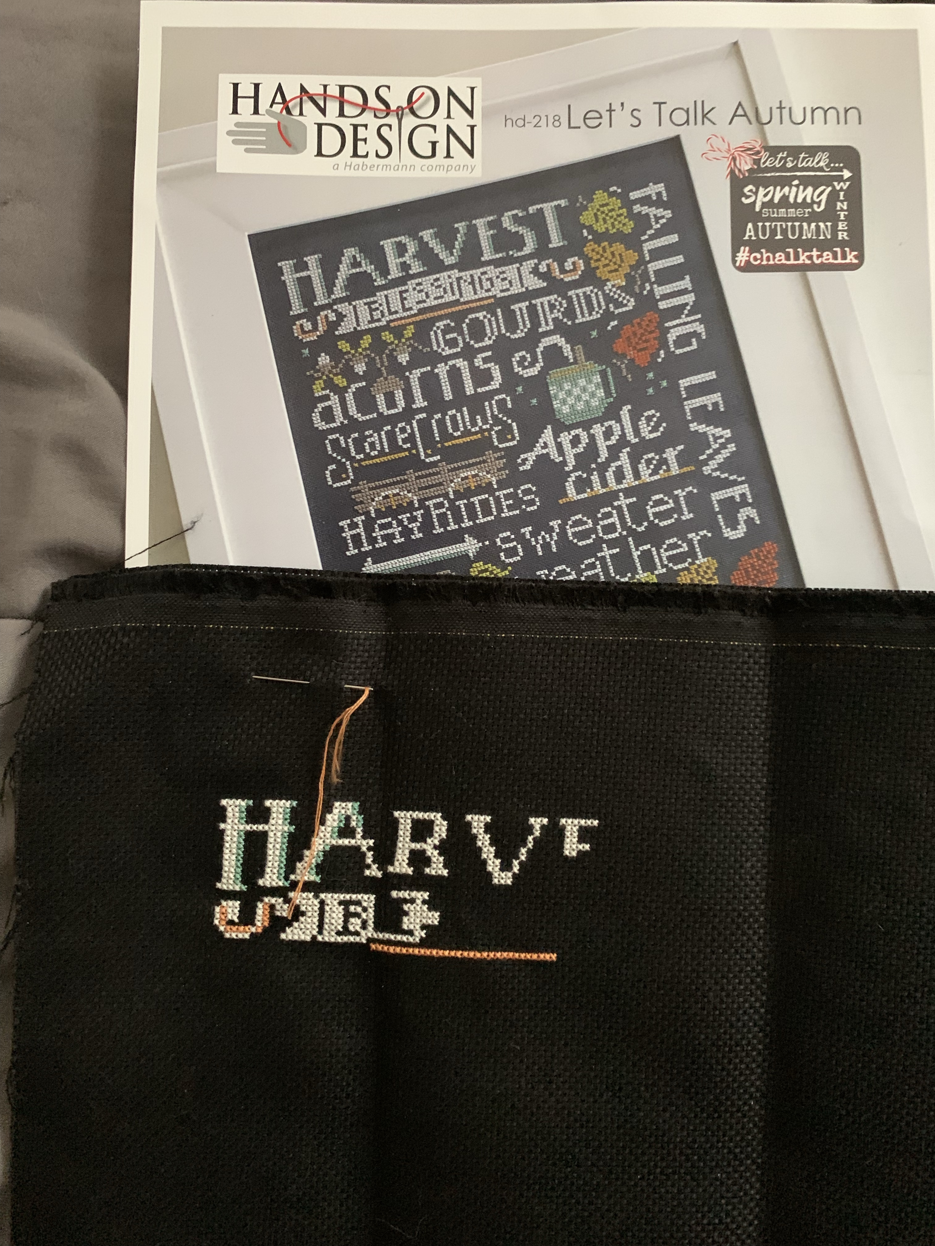 This was the only before picture that I could find but I already had the words “harvest” and “blessings” done when I picked this up recently. This is a WIPGO pick from May and my goal is the to finish the top half of the project.