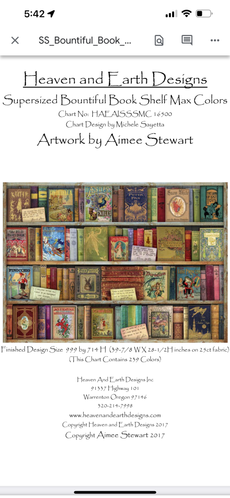 This will be what I start for my next “bike around Germany” stop. I only need 800 stitches for this project which I’m hoping I can finish fairly quickly this summer. It will be the tiniest start since this is such a HUGE project but I do plan on stitching this book by book (or card) at a time plus some bookshelf. The only downside is that I decided last minute to change the fabric I’m stitching this on and my new one won’t be here until July 9. I was going to go with my normal 28 ct evenweave but I decided I wanted to try stitching it on 22 ct Aida and see how I like that.